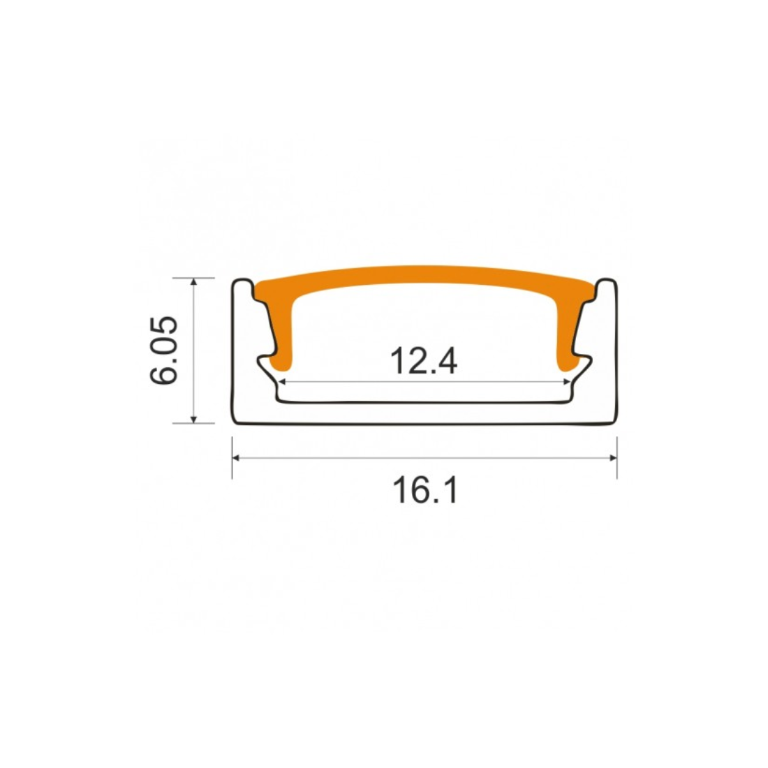 "1m Aluprofil med sort diffuser | 16x6mm | Sort | Overflademonteret"