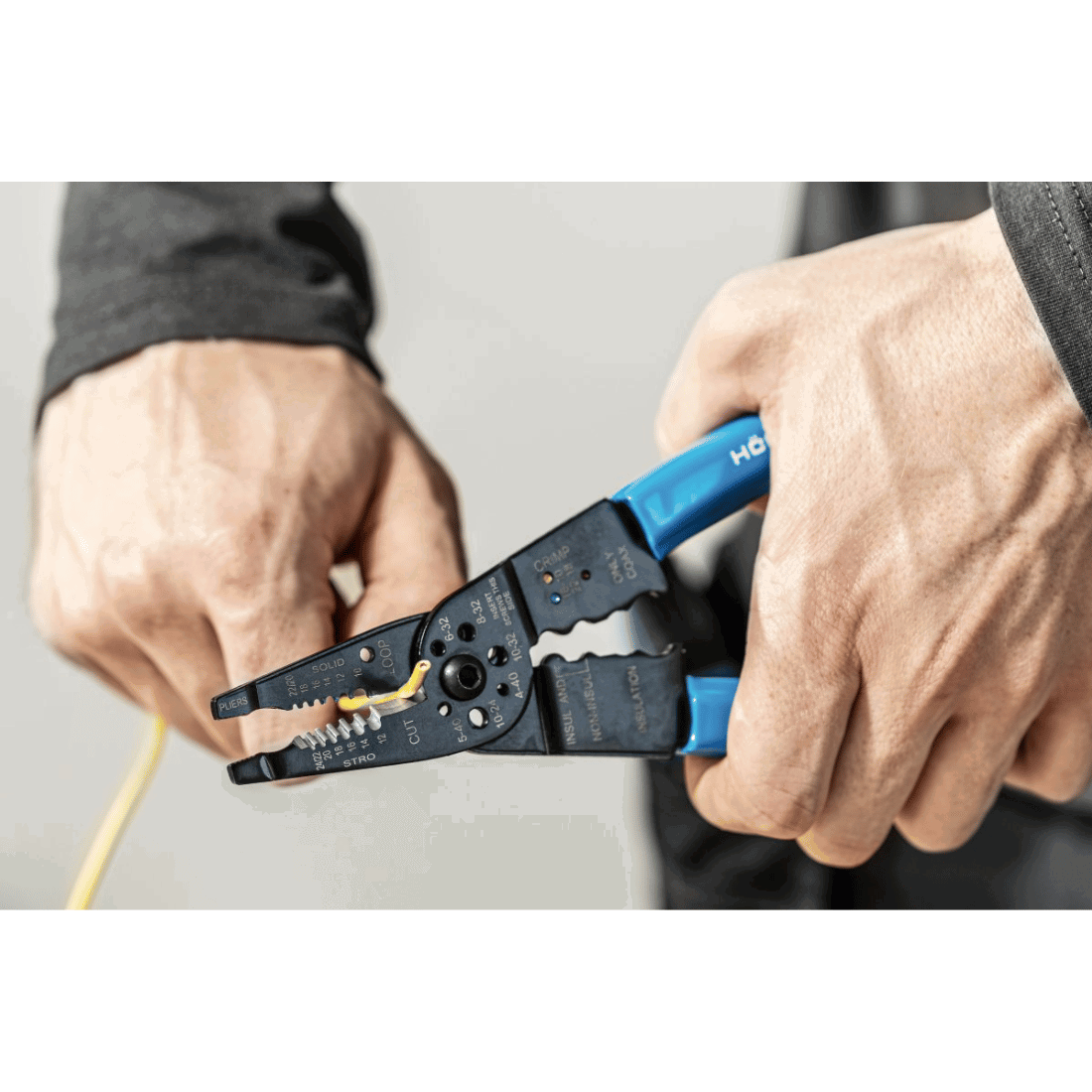 Værktøjet bruges til krimpning af isolerede og uisolerede forbindelser, afisolering af ledninger og skæring af kabler. Driftsområde: