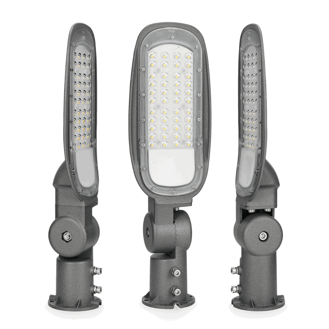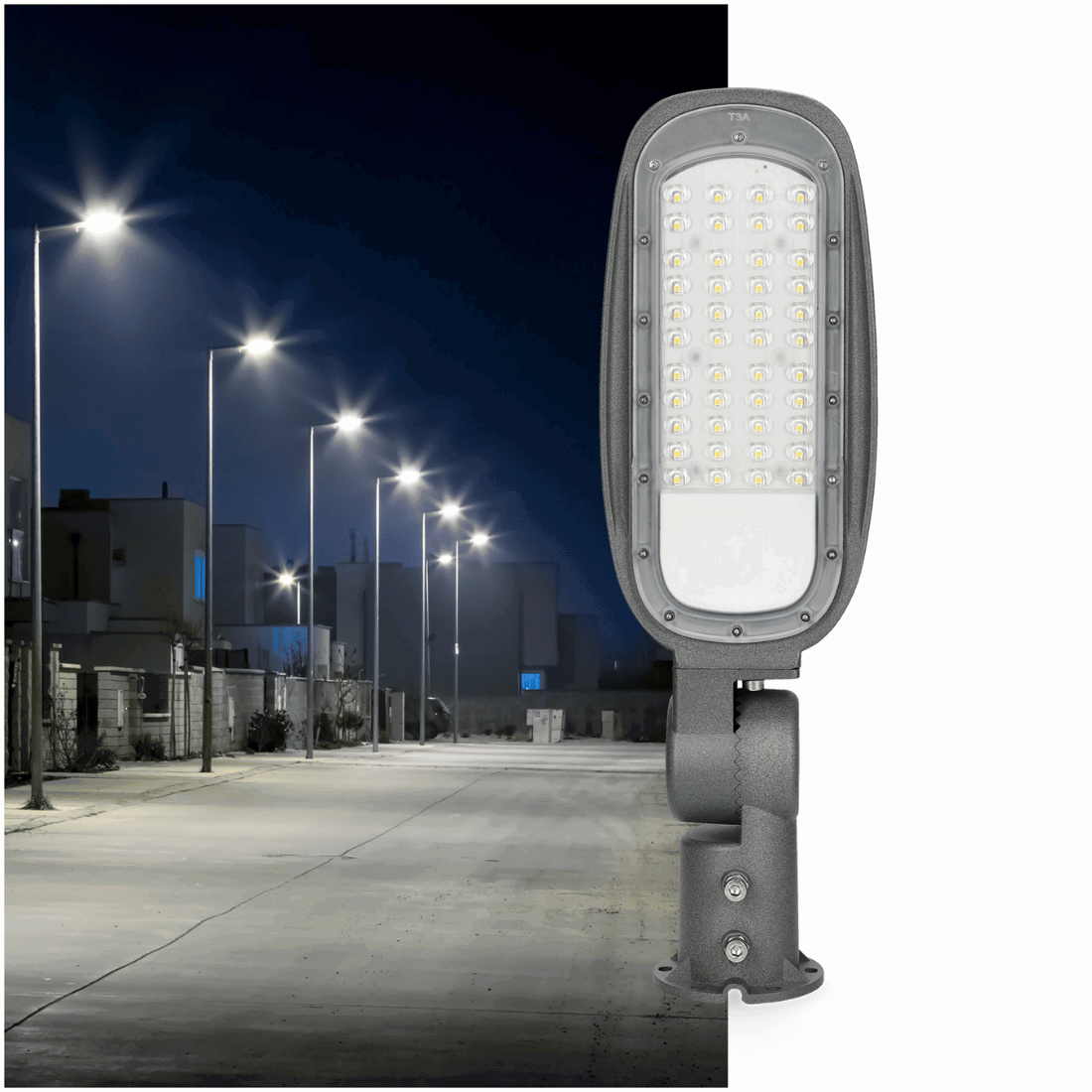 Denne LED lampe er perfekt til udendørs belysning af store områder som parkeringspladser, gårde og gader. Lampen har en effekt på 40W og en lysstyrke på 5600 lm ved en farvetemperatur på 4000K. Den kan justeres med op til 180 grader og er støvtæt og vandafvisende takket være dens høje IP66 klassificering. Lampen har en krop af aluminium og et cover af plastik, kan installeres både vertikalt og horisontalt og passer til pilare med en diameter på 60 mm.