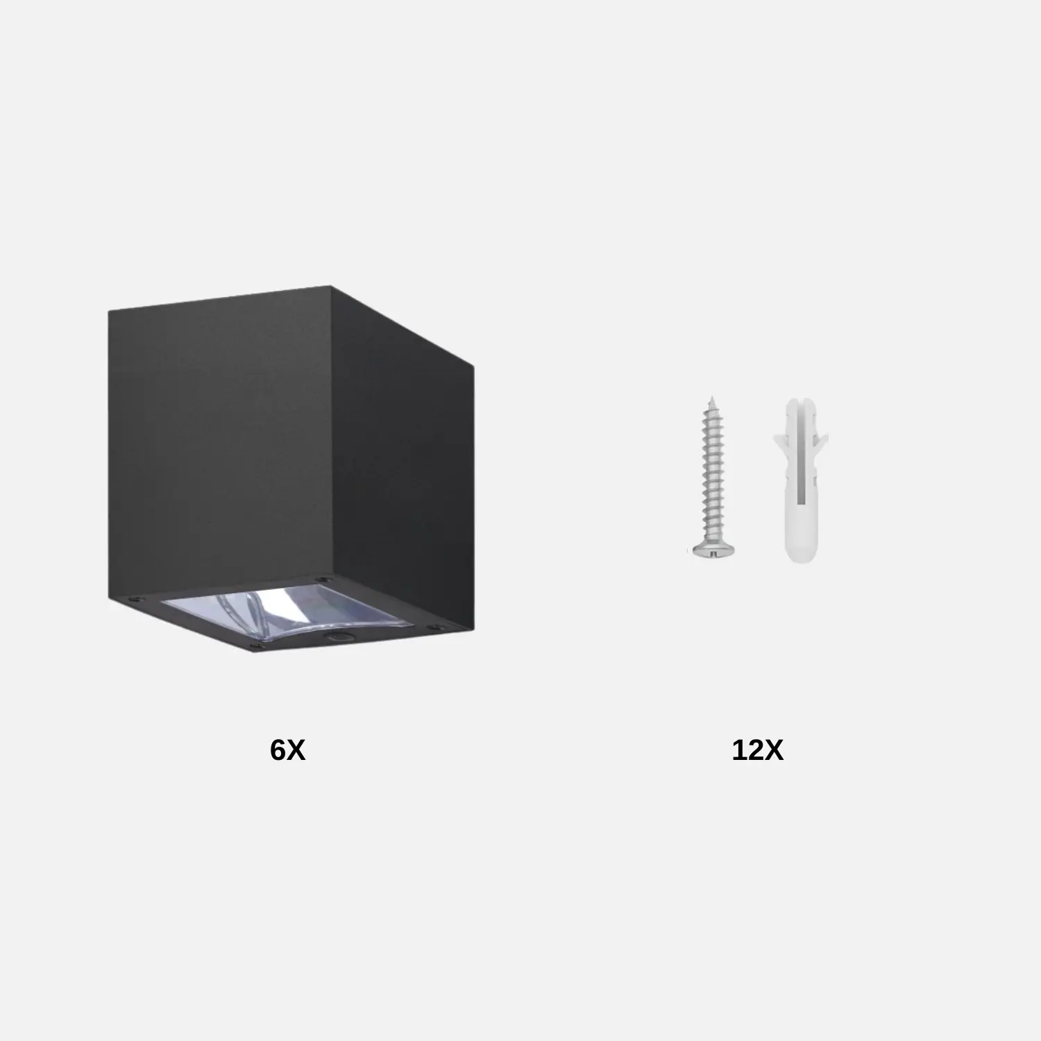 "Kube Solcelle Væglampe | 6-Pak | 2CCT | 28lm | 800mAh Batteri | QUERK | Sort"