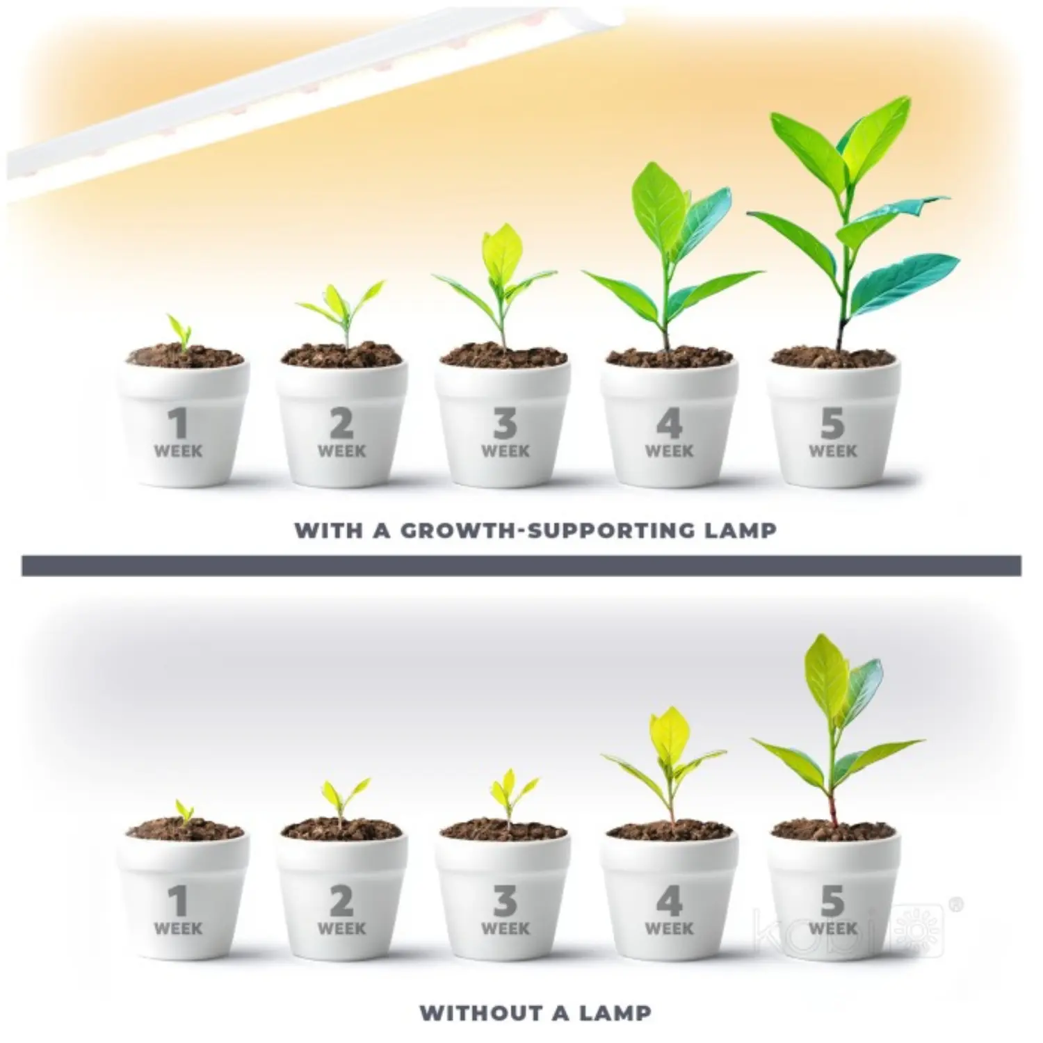 Denne LED løsning dækker hele vækstforløbet. Bølgelængder på 430–460 nm hjælper de første spirer i gang, 500–560 nm støtter stærke stængler og blade, og 580–730 nm fremmer blomstring og frugtsætning. Kombinationen efterligner naturligt sollys, så du får sund vækst, tættere plantemasse og flottere blomster. LED GROWLY 9W tænder hurtigt, tåler mange tænd/sluk (op til 12.500 cyklusser) og har en levetid på op til 25.000 timer.