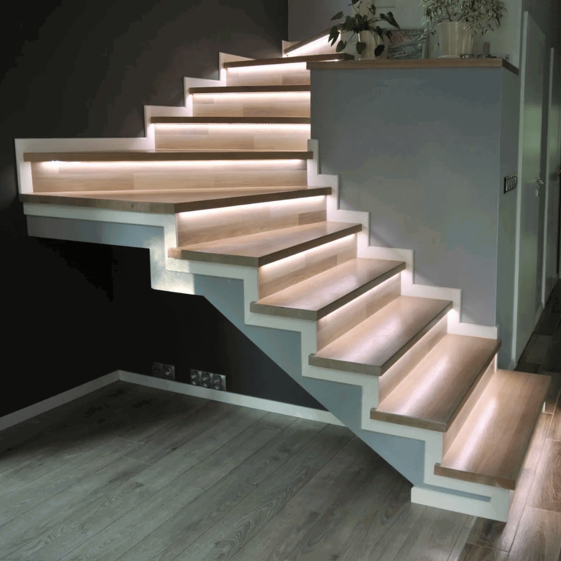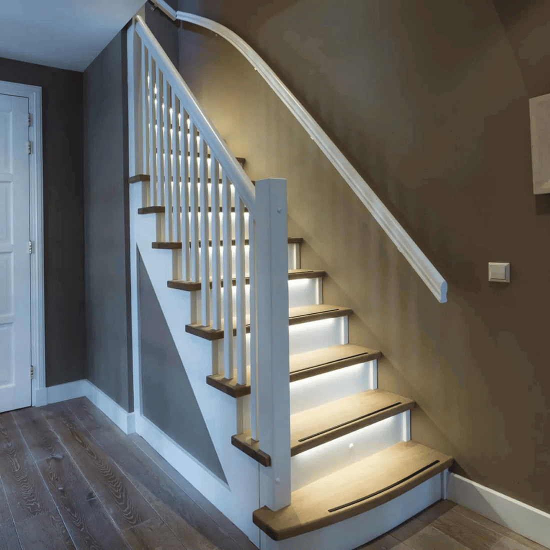Få belysning til dine trapper med dette sæt med 15 stk. Sættet består af LED strips til 15 trin og nemt at montere ved af hjælp af klæbestrimmel på bagsiden. Hvis trappetrinene er tæppebelagte har du også muligheden for at indsætte LED strippet i en alu profil med en diffuser med spreder lyset ud og skjuler lys dioder, som kan tilkøbes her på dette link her!