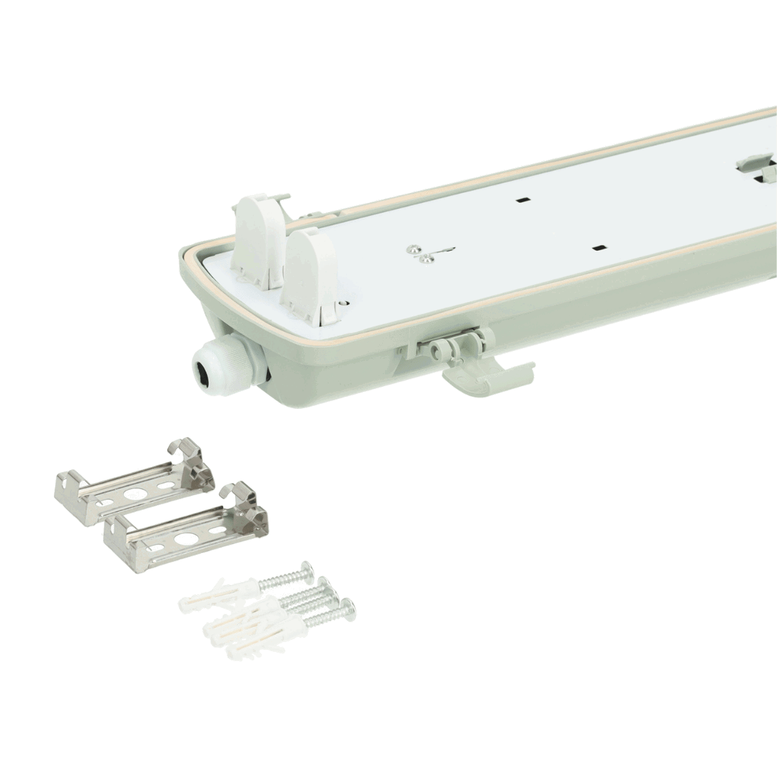 120cm LED dobbeltrørs armatur - IP65 (Støv og stænktæt) - Klar til LED rør (medfølger ikke) - Bruger 2 stk LED Rør