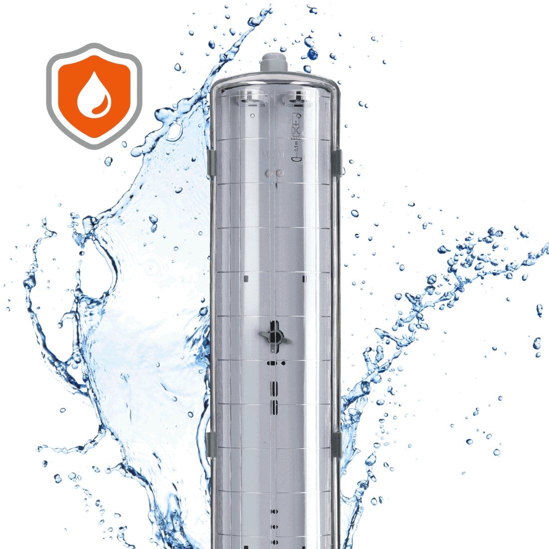 Her får du et perfekt stænk- og støvtæt dobbeltrørs 120cm LED lysarmatur i IP-klasse på IP65, der er klar til montering både indendørs og udendørs. LED Armaturet er fra start kun lavet til montering af LED lysstofrør (single-end input).