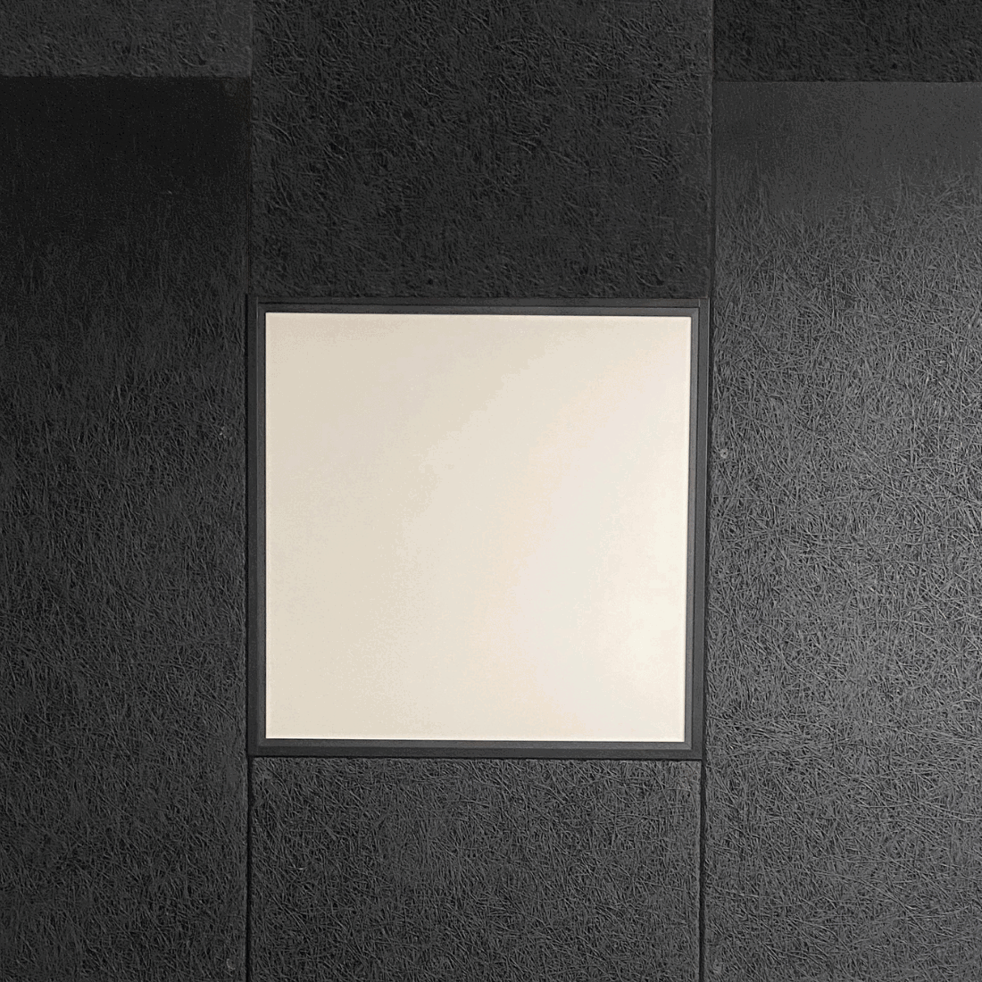 5 stk. sort LED Panel 60x60 - Inkl. 5 stk. sort Perfect Fit Troldtekt Ramme til LED Panel - LED Panel Ramme højde 25mm - 40W - 4000K - 4000 lm - 100 lm/w - Indbygget LED og inkl. driver. - Ikke-dæmpbar (Kan dæmpes ved tilkøb af dæmpbar driver - Kanten på panelet er sort