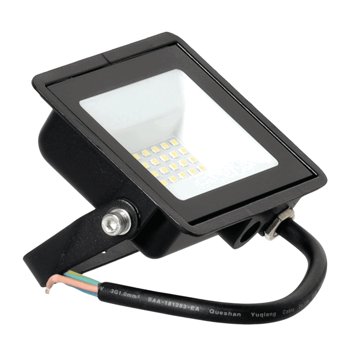 Denne LED projektør med 20 W er en kraftfuld og kompakt løsning til belysning af udendørsarealer. Med en lysstyrke på 1620 lumen og en farvetemperatur på 4000K sikrer projektøren et neutralt hvidt lys, der er behageligt for øjet. Den robuste konstruktion i aluminium og IP65 beskyttelse gør den ideel til alle vejrforhold. Projektørens holdbarhed på 20.000 timer og dens evne til at klare -20 til 40 grader sikrer en lang levetid.
