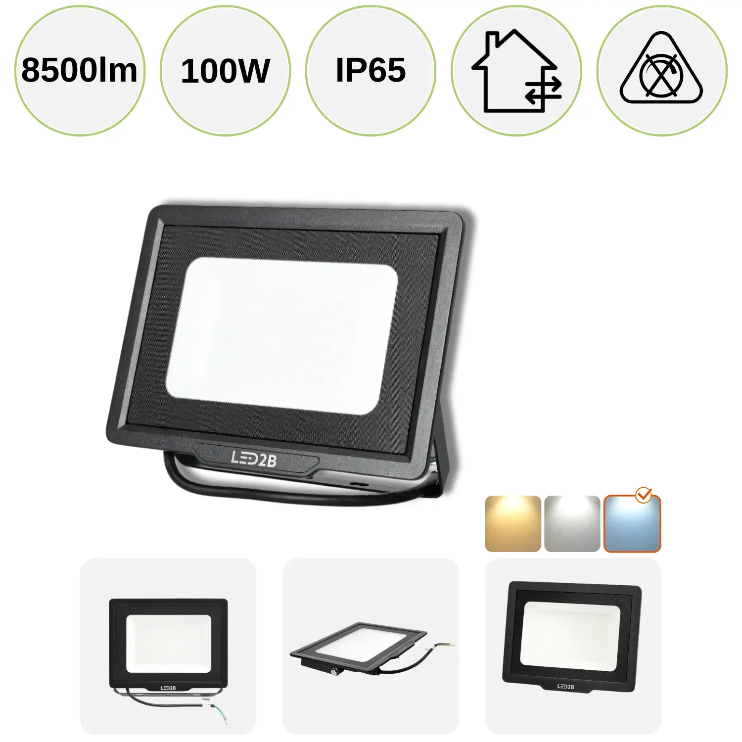 LED Projektør | 6500K | 8500lm | 100W | IP65 | LED2B MH | Sort