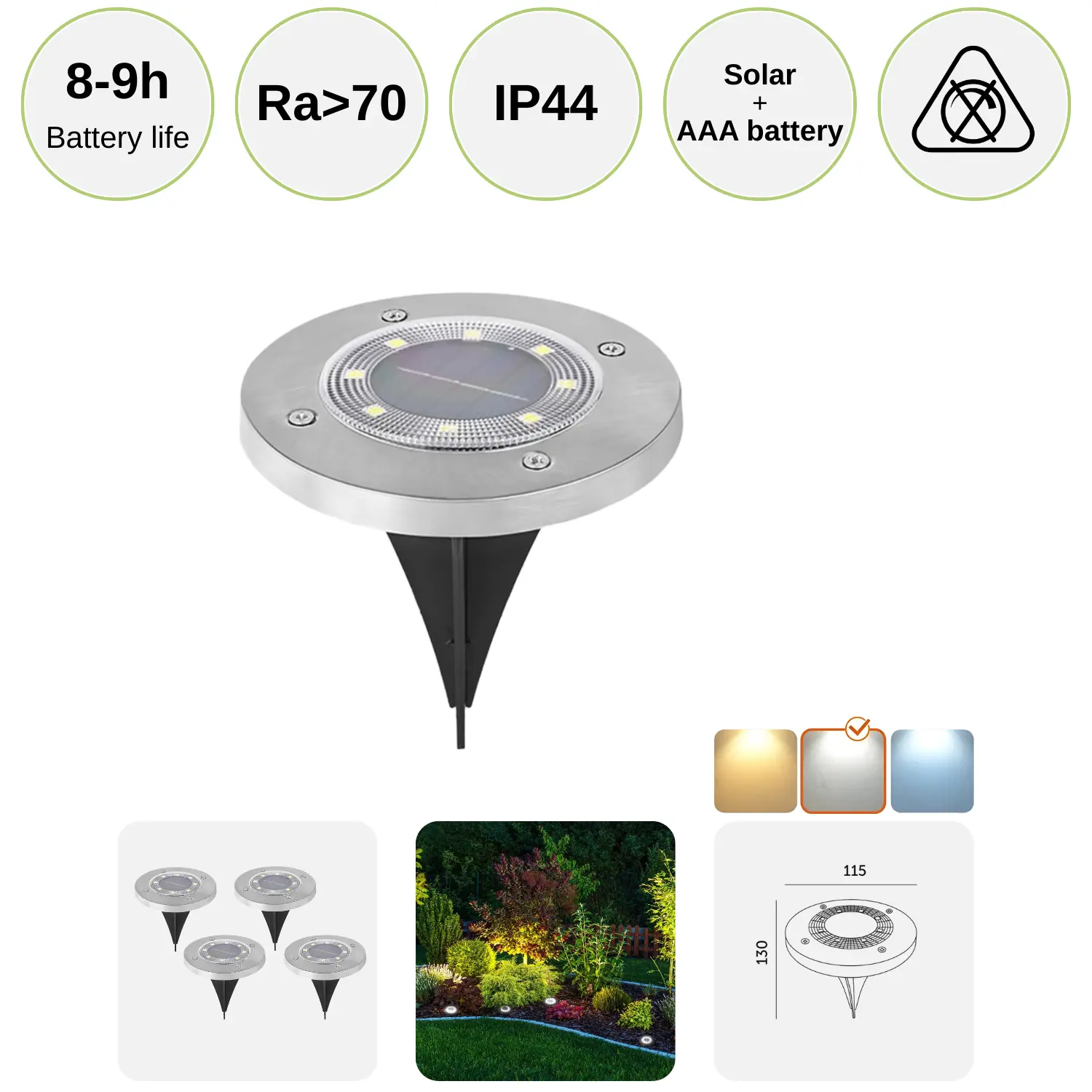 En energieffektiv solcellelampe på spyd, der vil hjælpe dig med at reducere din elregning og samtidig give dig en smuk og effektiv belysning til haven. Lampens enkle design er tidsløst og passer derfor godt sammen med andre ting i haven. Solcellelampen fungerer godt til at belyse bede, terrasser og indkørsler.