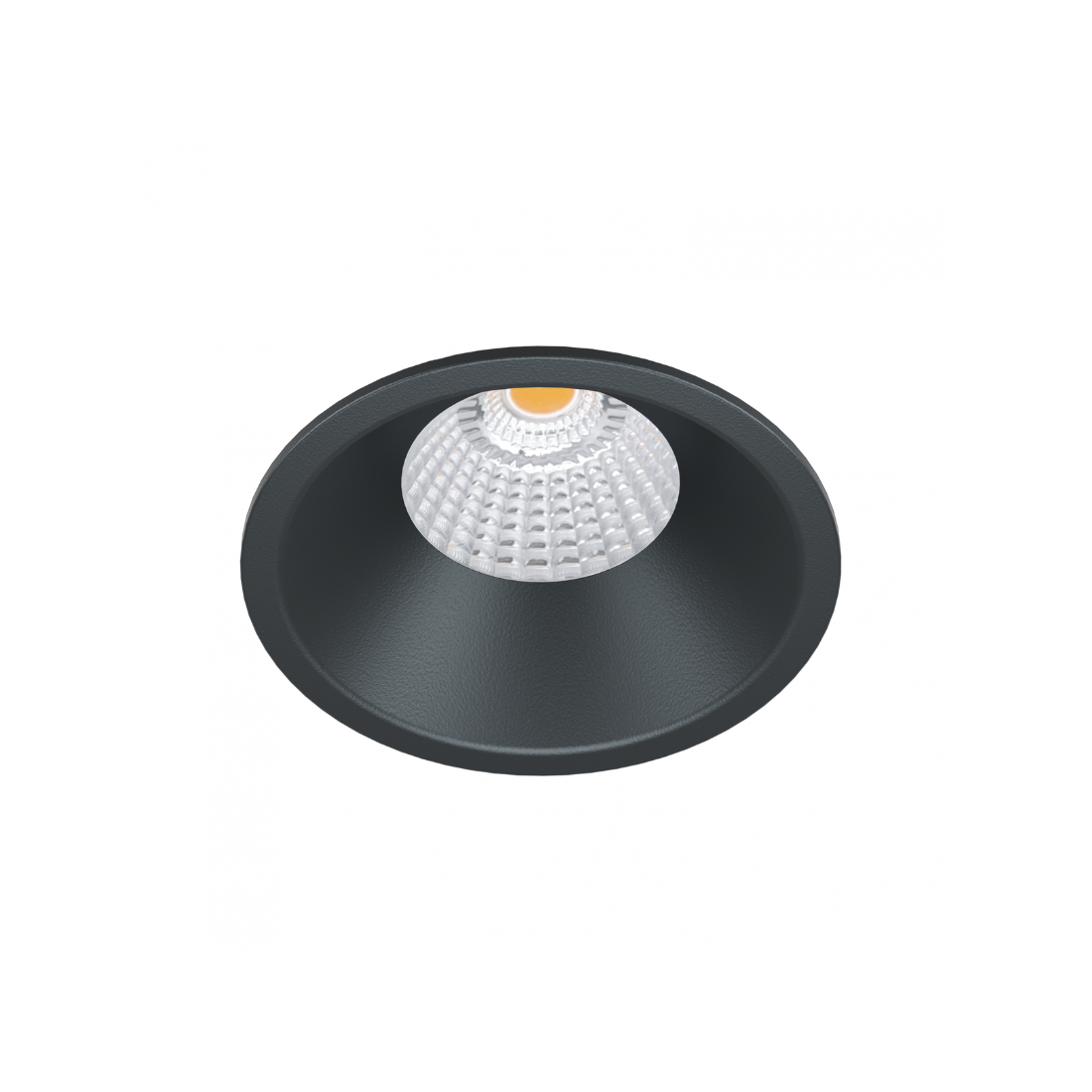 Dim-To-Warm indbygningsspot med justerbar farvetemperatur fra 2500K-3000K. Dæmpbar LED teknologi. Nem og sikker montage i et stilrent, sort design.