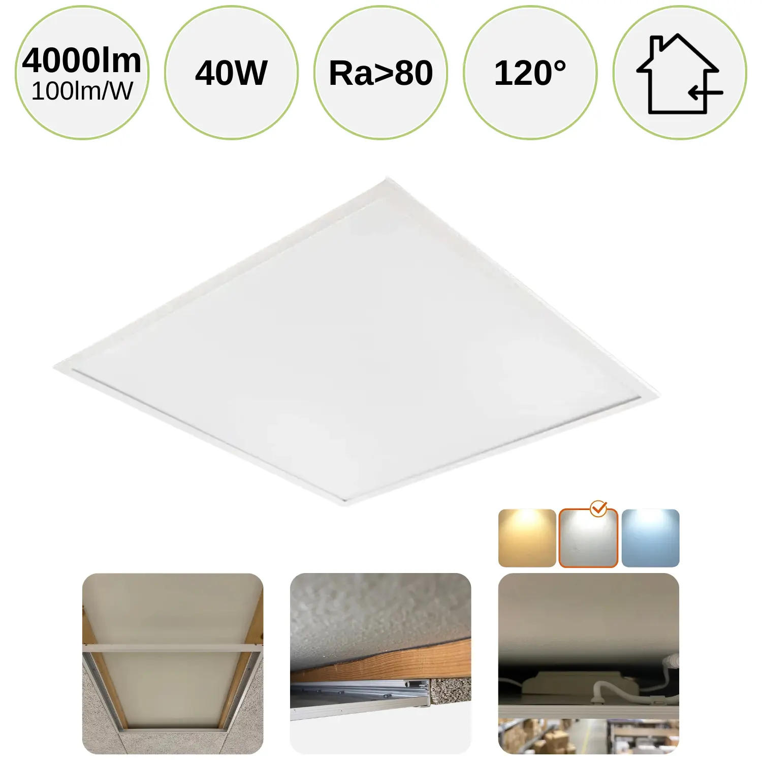 God belysning i garagen handler om at se farver og detaljer tydeligt, også når du står tæt på bilen eller arbejdsbordet. Hvert panel leverer 4000lm ved 40W, så du får led lys garage med høj effektivitet på 100 lm/W. Med Ra>80 bliver tingene lette at se, og 120 graders lysspredning gør at lyset i garagen fordeles jævnt. Når du vælger LED lys til garage, får du samtidig en løsning der tænder med det samme og holder sig stabil. Du får LED lys i din garage som giver samme klare niveau hver gang du tænder. Til dig der vil have lamper garage som fungerer både til rengøring og hobby, giver denne pakke et trygt og klart lys i garage.LED Panel garage til Troldtekt loft med rammer