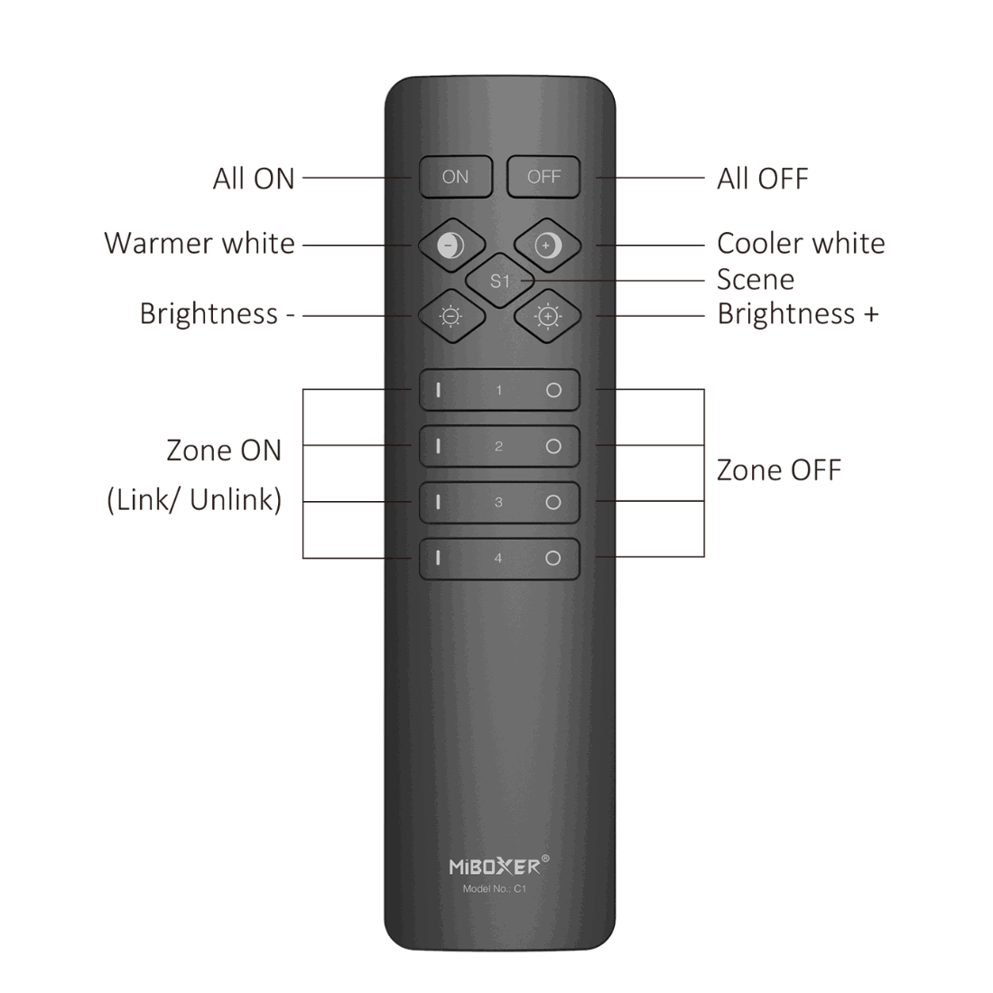 MiBoxer Fjernbetjening | CCT | 4 Zoner | Sort | C1