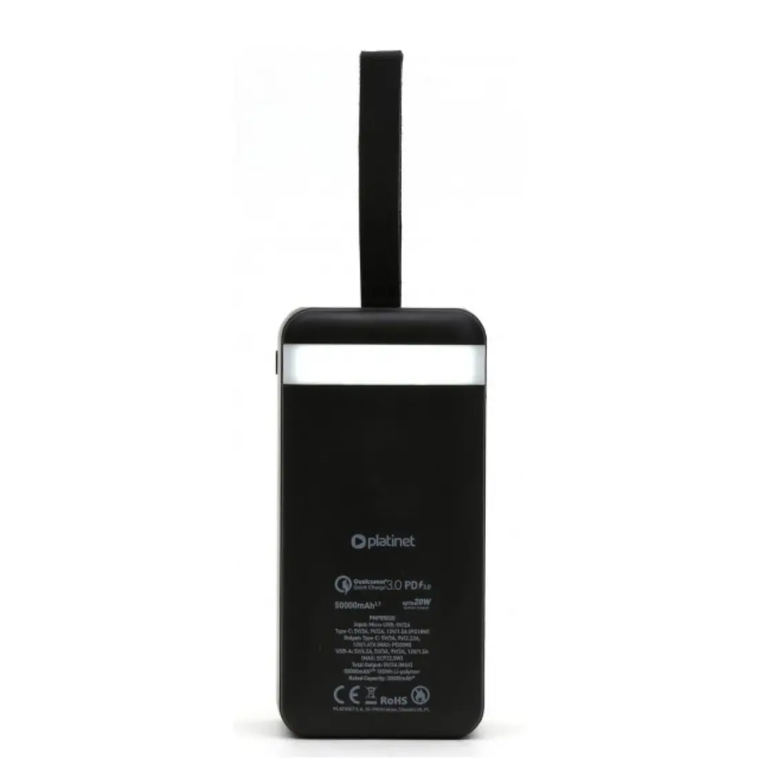 POWER BANK | 50000mAh | 20W | USB og USB-C | Indbygget lyskilde