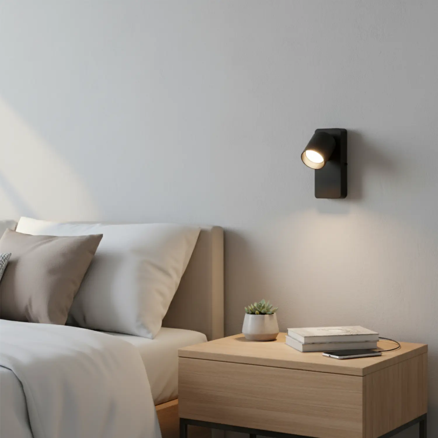 Denne sengelampe til væg er udstyret med en imponerende rotationsvinkel på 350°, hvilket giver dig fuldstændig kontrol over lysretningen. Det er den ideelle løsning for læsning i sengen eller arbejde om natten uden at forstyrre din partner. Med en enkel installation og et væghængt design frigør denne lampe værdifuld plads på dit natbord og tilføjer et moderne touch til dit soveværelse.