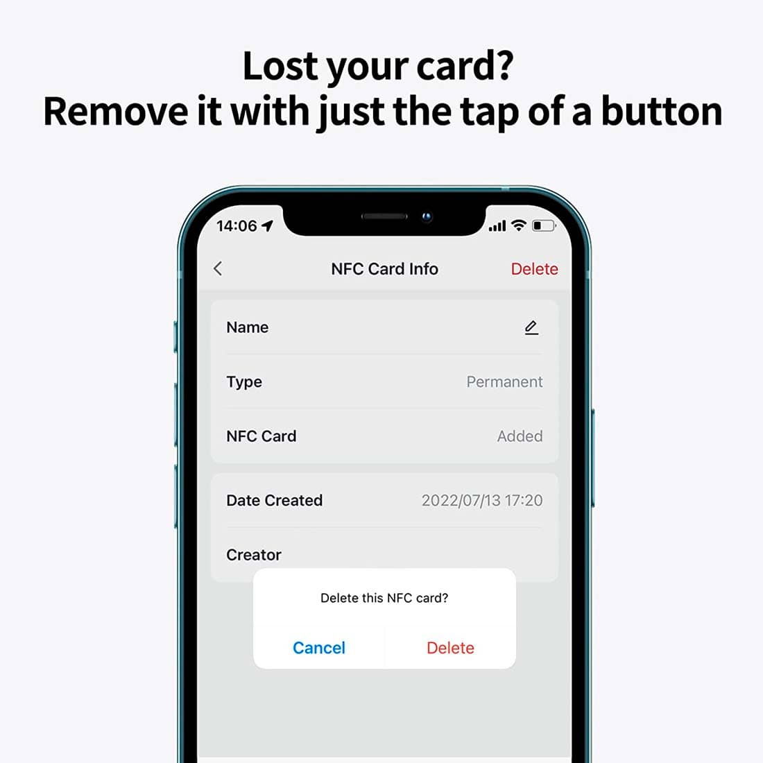Det er nemt at tilføje kortet til dit SwitchBot Smart Lock system, og det kræver blot at du følger instruktionerne i appen. Skulle det ske, at du mister eller taber dit NFC kort, kan du blot slette dette inde i appen. Du kan tilføje op til 100 forskellige kort i appen, hvilket gør denne type løsning særdeles velegnet til udlejningsejendomme, eller ejendomme med flere forskellige brugere.