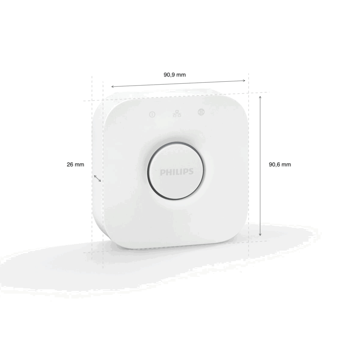 Philips Hue Bridge er essentiel for at udnytte det fulde potentiale af dit smart hjem-belysningssystem. Med denne enhed kan du integrere op til 50 lyskilder og skabe avancerede lysindstillinger og -scenarier, som kan styres direkte fra din smartphone eller tablet.