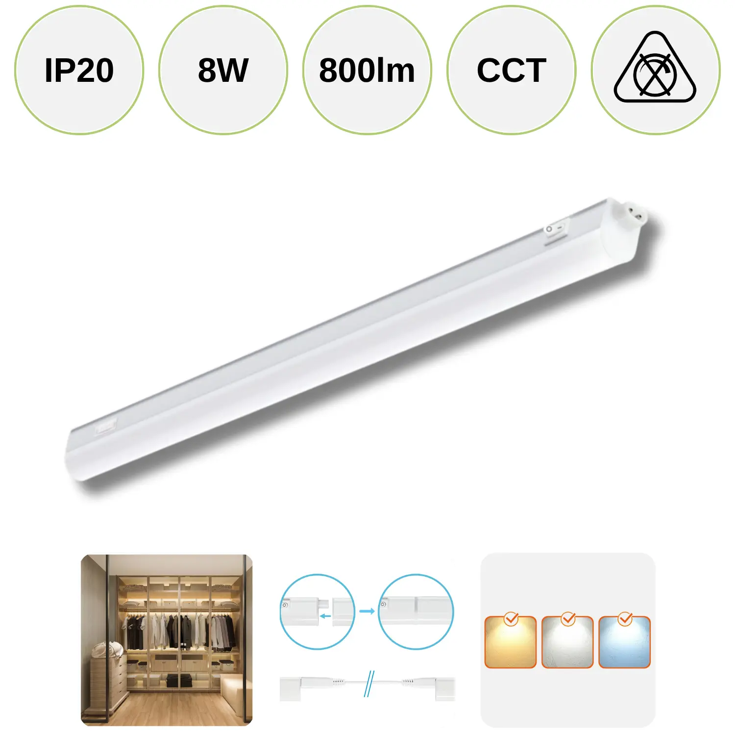 Specifikationer for: "Underskabsarmatur | 8w | 60cm | 800lm | CCT | Hvid"