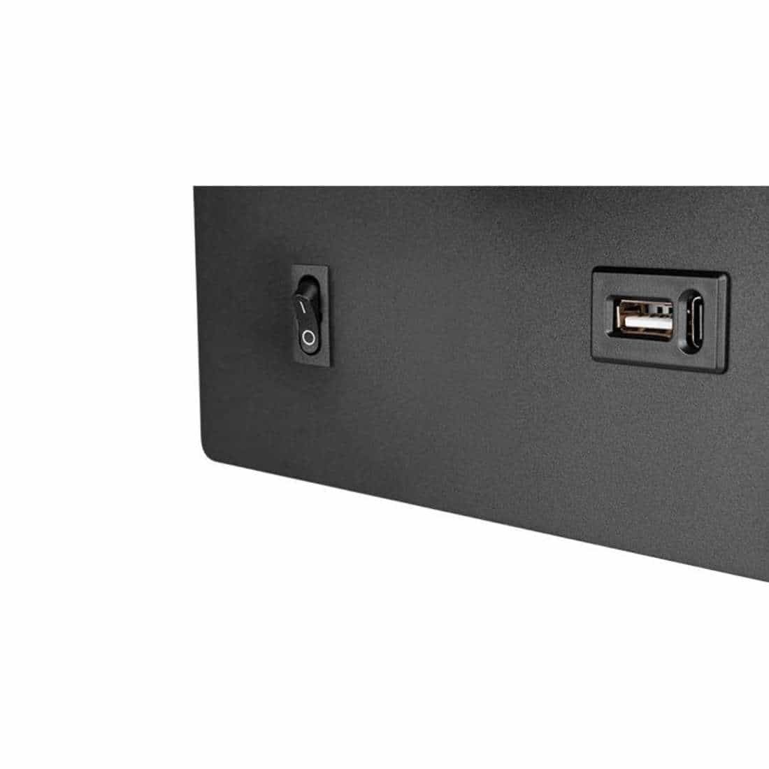 Opgrader dit soveværelse med vores innovative sengelampe, der kombinerer praktisk opbevaring og moderne teknologi. Denne lampe er ikke kun en lyskilde; den har også en indbygget hylde og USB stik type A og C, hvilket gør den til den perfekte ledsager for nattelæsning og opladning af dine enheder. Med sit elegante design i matsort og messing, tilføjer den et touch af klasse til ethvert rum.