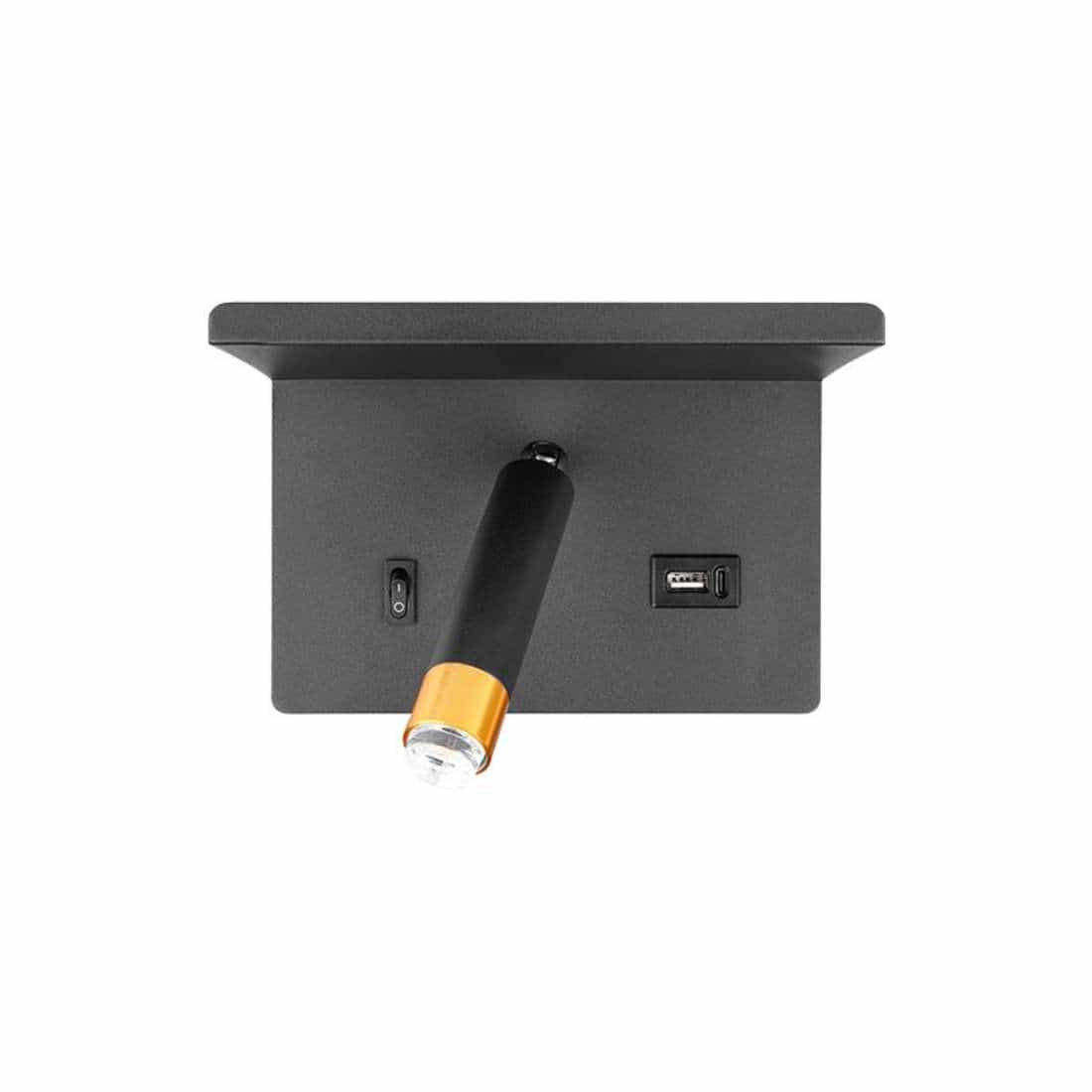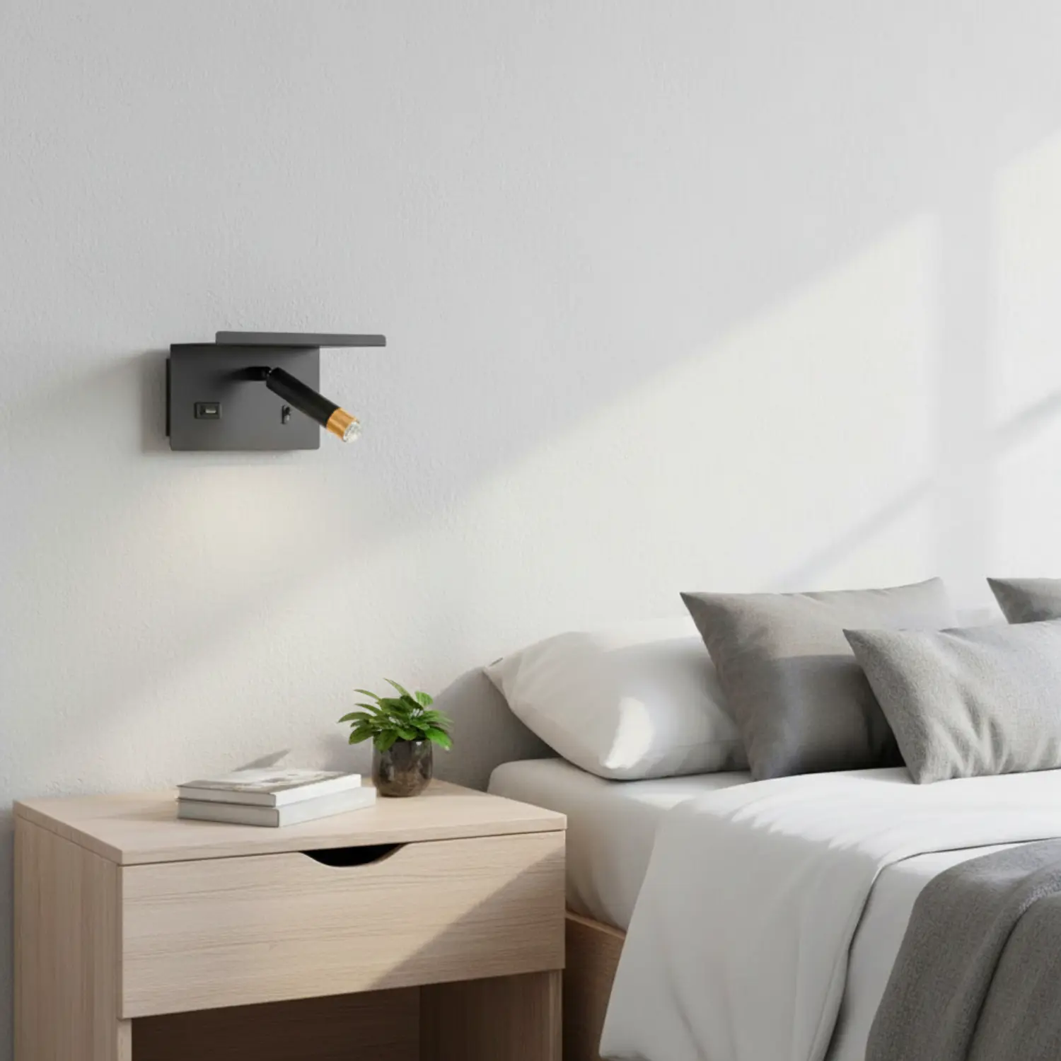 "Væghængt Sengelampe Med Hylde og USB Stik | USB A+C | G9 | Messing Og Sort "