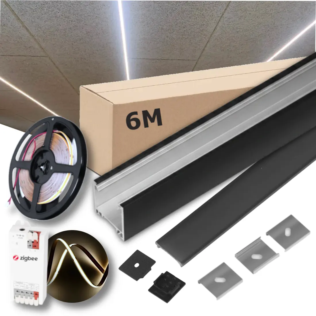 Zigbee Lysskinne til Troldtekt | 6m Sæt | 24v COB LED | Sort | 4000K